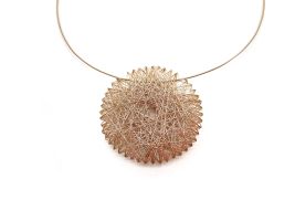 Ein hauchdünner Faden aus Gold, kunstvoll zu einem kostbaren Anhänger verwoben. Auf den ersten Blick wirkt das schimmernde Fadennetz chaotisch, doch auf den zweiten Blick wird klar:
