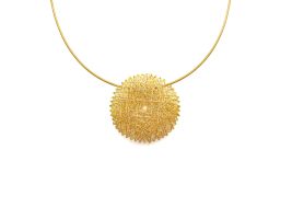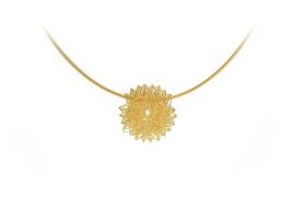 Ein hauchdünner Faden aus Gold, kunstvoll zu einem kostbaren Anhänger verwoben. Auf den ersten Blick wirkt das schimmernde Fadennetz chaotisch, doch auf den zweiten Blick wird klar: