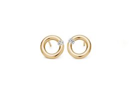 Die feinen Proportionen des Niessing Spannring Schmucks in Form von Anhänger oder Ohrschmuck stellen höchste Ansprüche an die handwerklichen Fertigkeiten der Manufaktur. Der Brillant wird liegend eingespannt. So ist er dem Betrachter zugewandt, frei und doch geborgen: