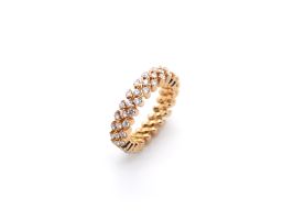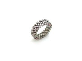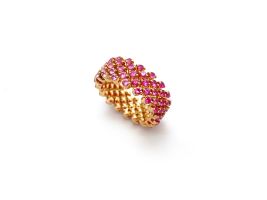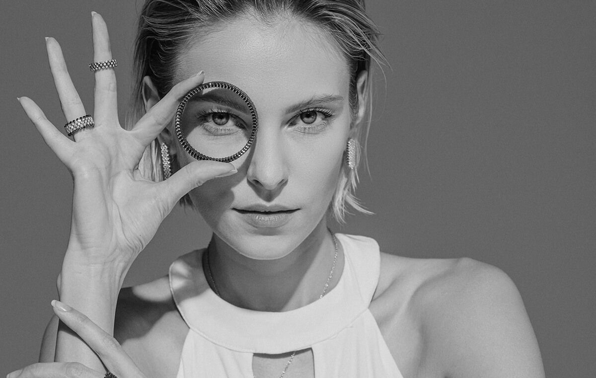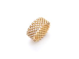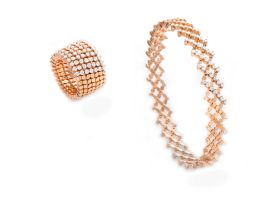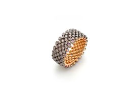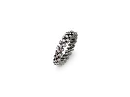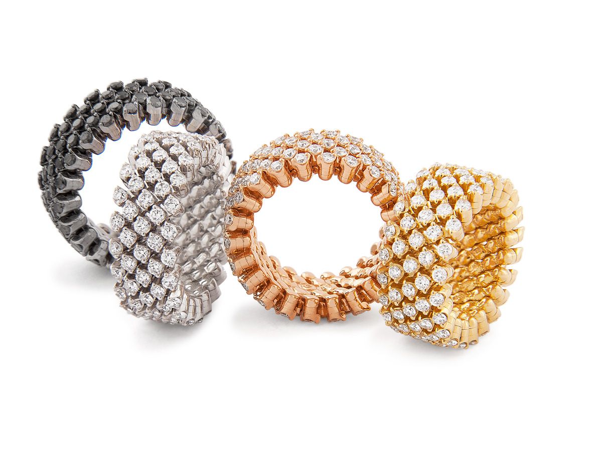Hinter dem einfachen Prinzip steht ein sehr komplexer Herstellungsprozess. Jedes Schmuckstück besteht aus tausenden von Schweisspunkten und mehr als hundert Einzelteilen. Durch einfaches Zusammendrücken und Auseinanderziehen lassen sich die Schmuckstücke von Serafino Consoli einfachst in der Weite verändern.